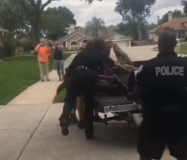 “The gator flipped back and head-butted the guy ― knocked him on the ground,†local resident Walter Day told Orlando’s WKMG-TV. “[At] that point, it was kind of free, and it whacked police officers with its tail.â€