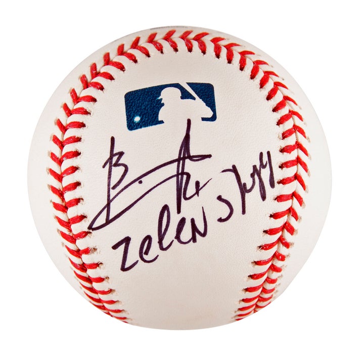 The ball was expected to sell for at least $15,000 but the leading bid as of Tuesday had already exceeded that amount, an RR spokesperson said.“With what’s going on in the world right now it makes sense to auction it at this point because the proceeds will help the people in Ukraine,” Kaplan said in a telephone interview “What’s going on in Ukraine is a disgrace and it’s breaking my heart to see the people dying there. Their needs are just so dire right now.”The ball is signed with black felt tip both in Ukrainian Cyrillic and in Latin letters. It is accompanied by a transmittal letter signed by Volodymyr Yelchenko, Permanent Representative of Ukraine to the United Nations, which reads: “Dear Mr. Kaplan, Please find enclosed a baseball, signed by the President of Ukraine, H.E. Mr. Volodymyr Zelenskyy during the visit to New York in September 2019.”In addition to the unspecified percentage of the sale that will be donated through the global nonprofit Americares, RR Auction will contribute its buyer’s premium and seller’s commission to war relief efforts. Americares’ website describes its humanitarian response in Ukraine as focused on the medical needs of millions of refugees