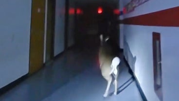 The officers eventually used a dog snare to get the deer out of the classroom, and it soon fled the building the same way it got in. Authorities said the animal didn’t appear to be seriously injured.